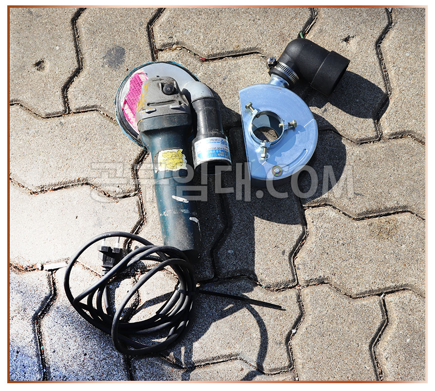 그라인더에 끼우고 업소용 / 공업용 청소기와 연결해서 먼지를 흡입하며 연마작업 진행이 가능하십니다.